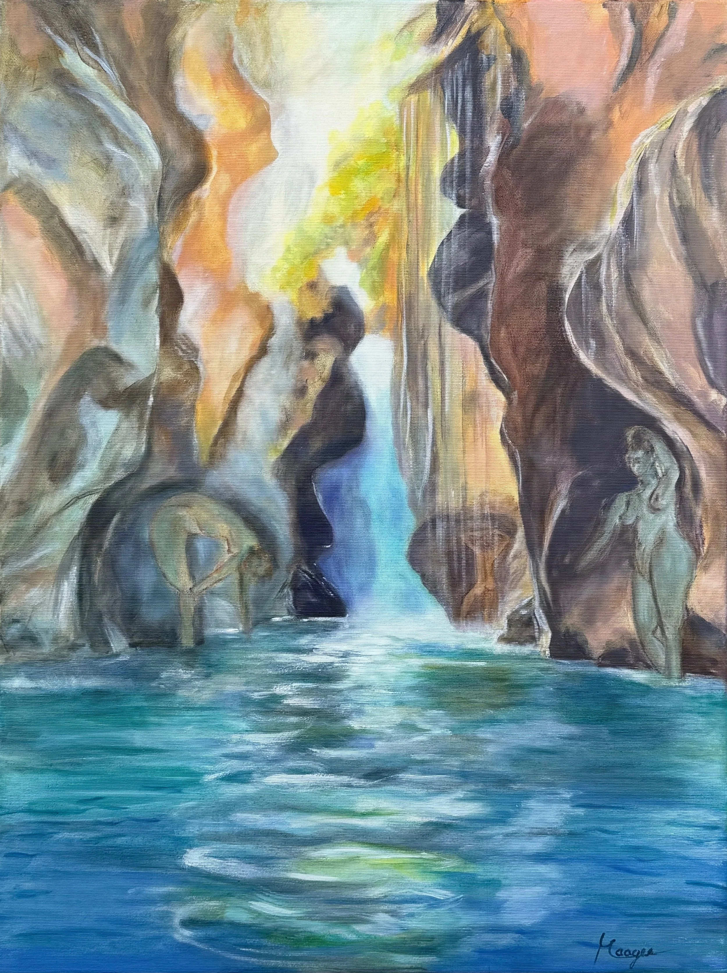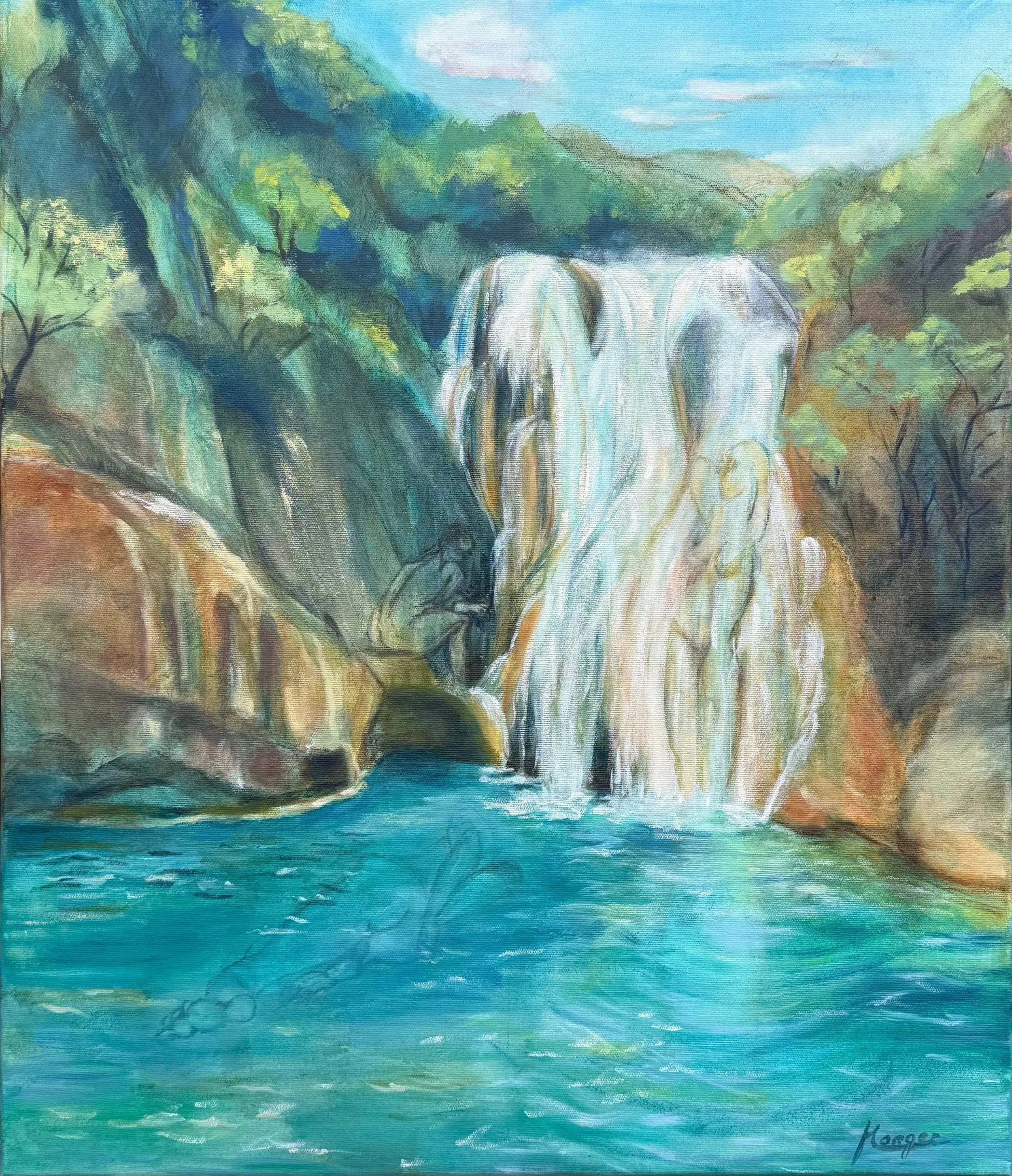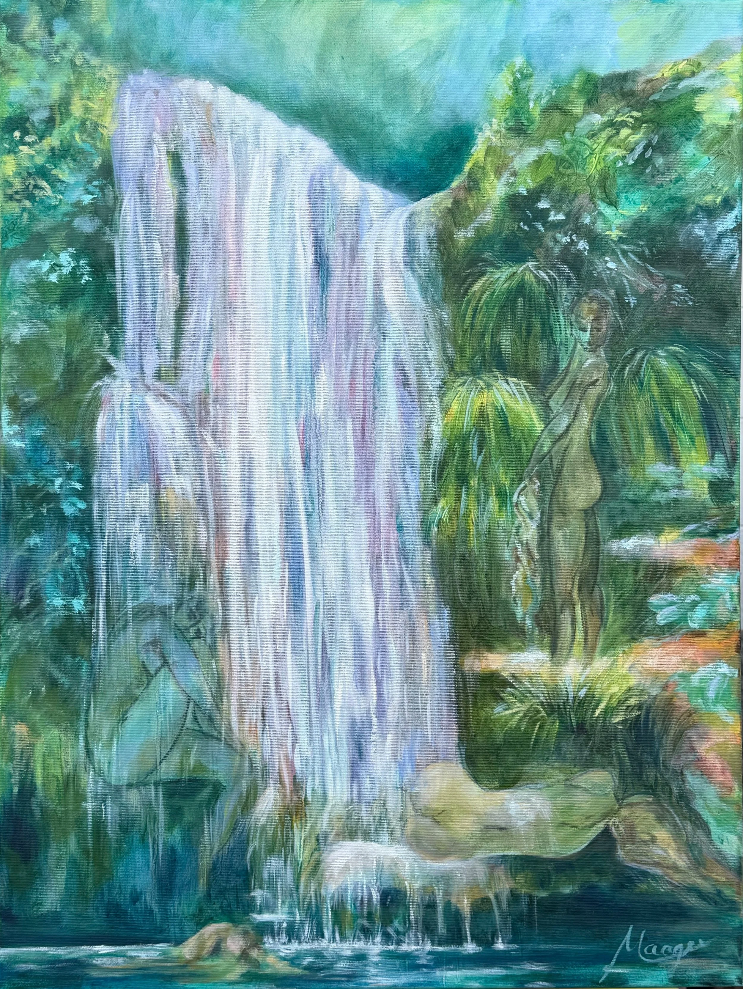 Here water becomes spirit- and form dissolves into light. Figures rise within the cascade, suspended between worlds, where renewal and transformation flow as one.