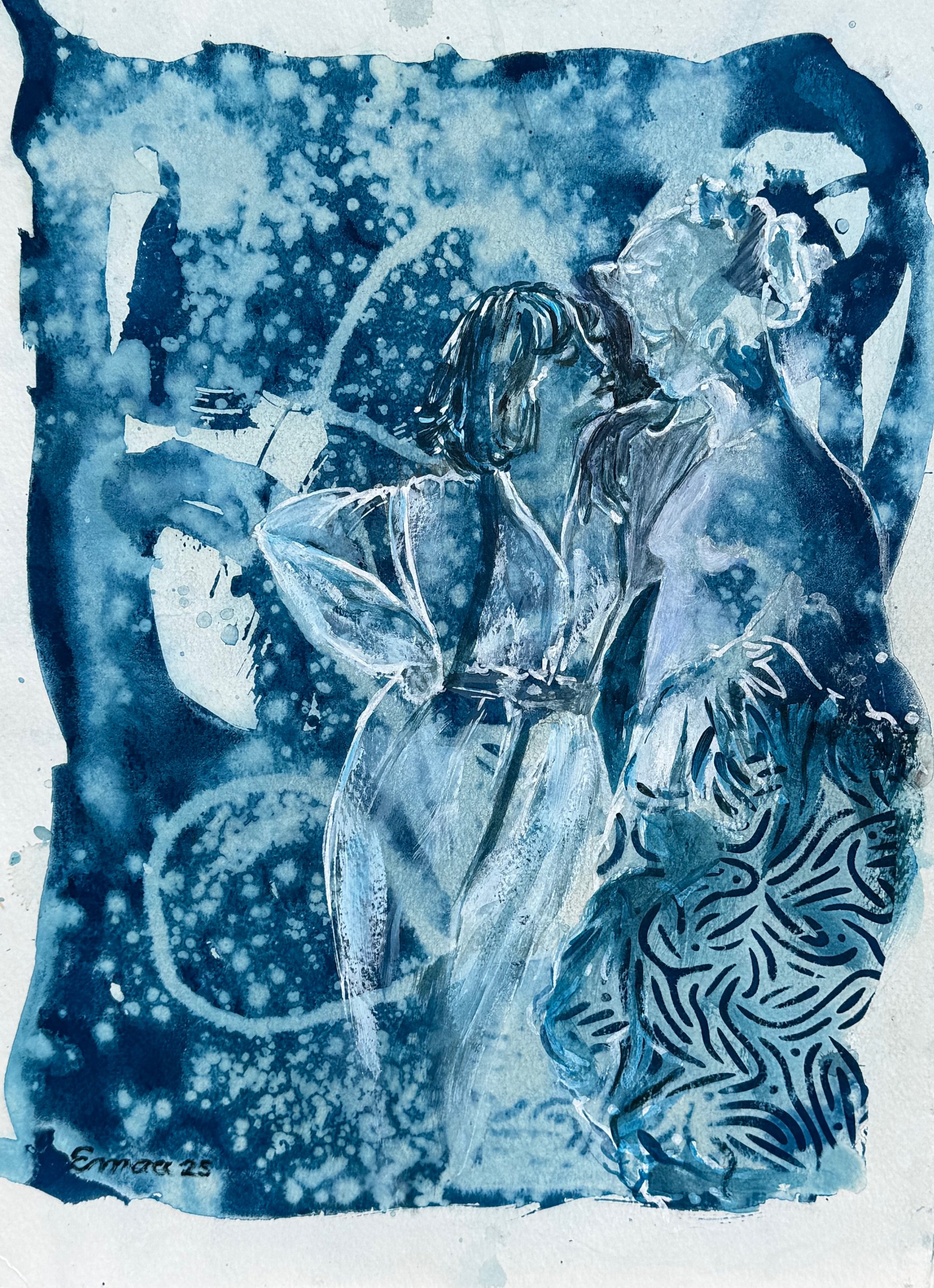 Cyanotype and mixed media on Waterfordpaper, 38 × 28 cm