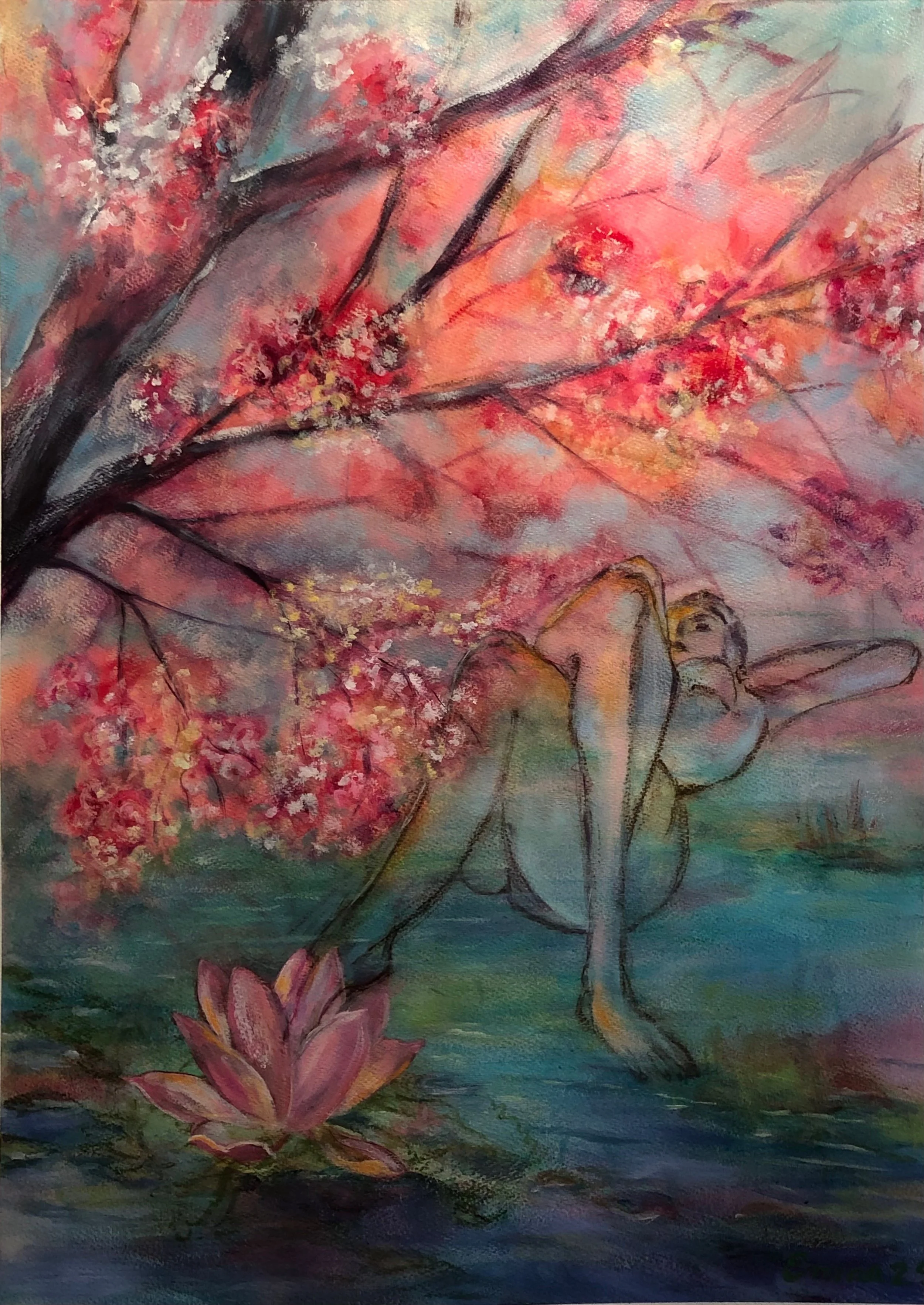 In this quiet reverie dream and nature interwine ligth and unfold like petals- the inner world awakening into bloomform